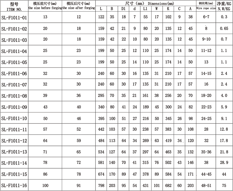 1、接头采用碳钢模锻而成,压合钢丝绳处采用机械加工,尺寸精度高,可放心与钢丝绳配合使用。 2、产品可用于牵引钢丝绳用,使用方便。 3、不能用于同捻向钢丝绳,不能用于纤维绳